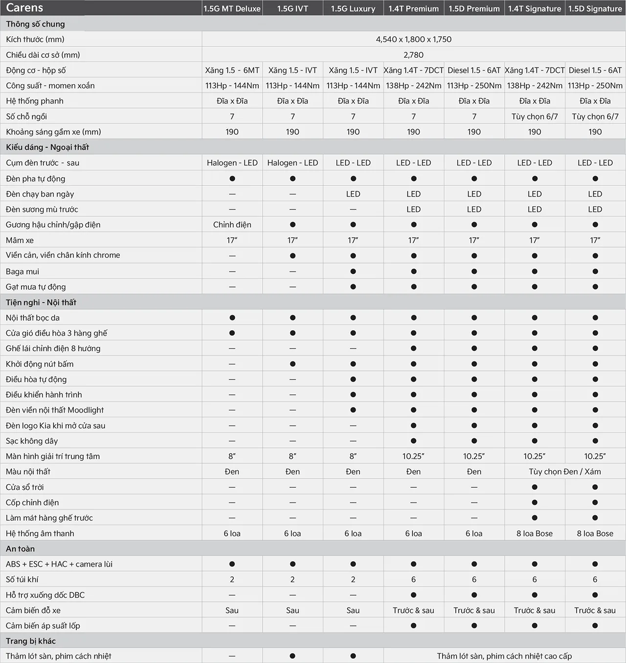 Thông tin chi tiết xe Kia Carens Mới Nhất 2025